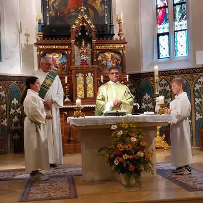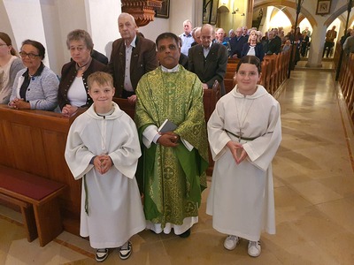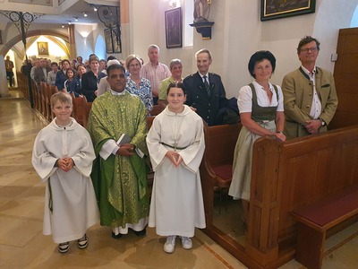 Mit einer großen Besuchergemeinde und großer Freude feierte Pater Thomas heute den Sonntagsgottesdienst. Genau ein Jahr nach seiner Verabschiedung verweilt er elf Tage auf "Heimaturlaub", wie er selbst sagte, in den Pfarren Randegg und Reinsberg. Eine spontane Sammlung für die Ordensgemeinschaft der „Missionaries of Faith“ zeigte die gute Verbindung, die es immer noch mit P. Thomas Neernakunnel gibt. In den Sommermonaten hat er eine Urlaubsvertretung in Maria Laach angenommen. Seine Urlaubstage nützt er nun, um seine indischen Mitbrüder in Österreich zu besuchen. Am 31. August geht es wieder zurück nach Indien. Danke für deinen Besuch Pater Thomas und vielleicht bis zum nächsten Sommer!