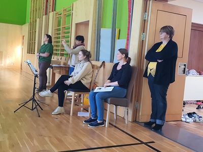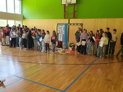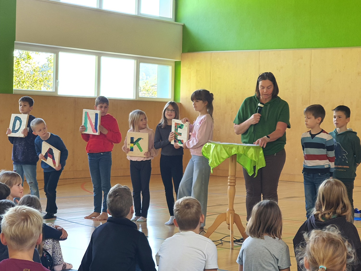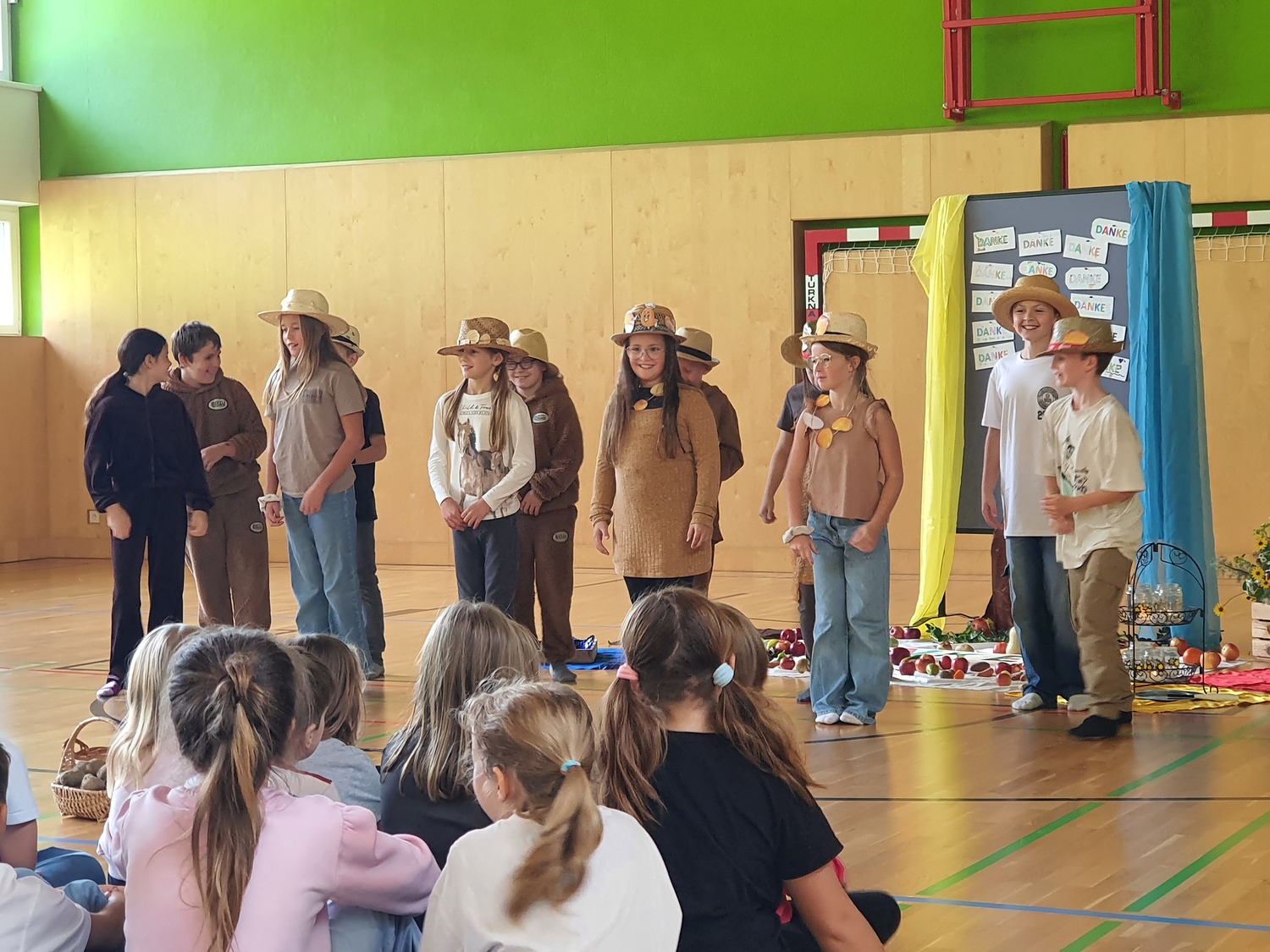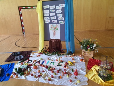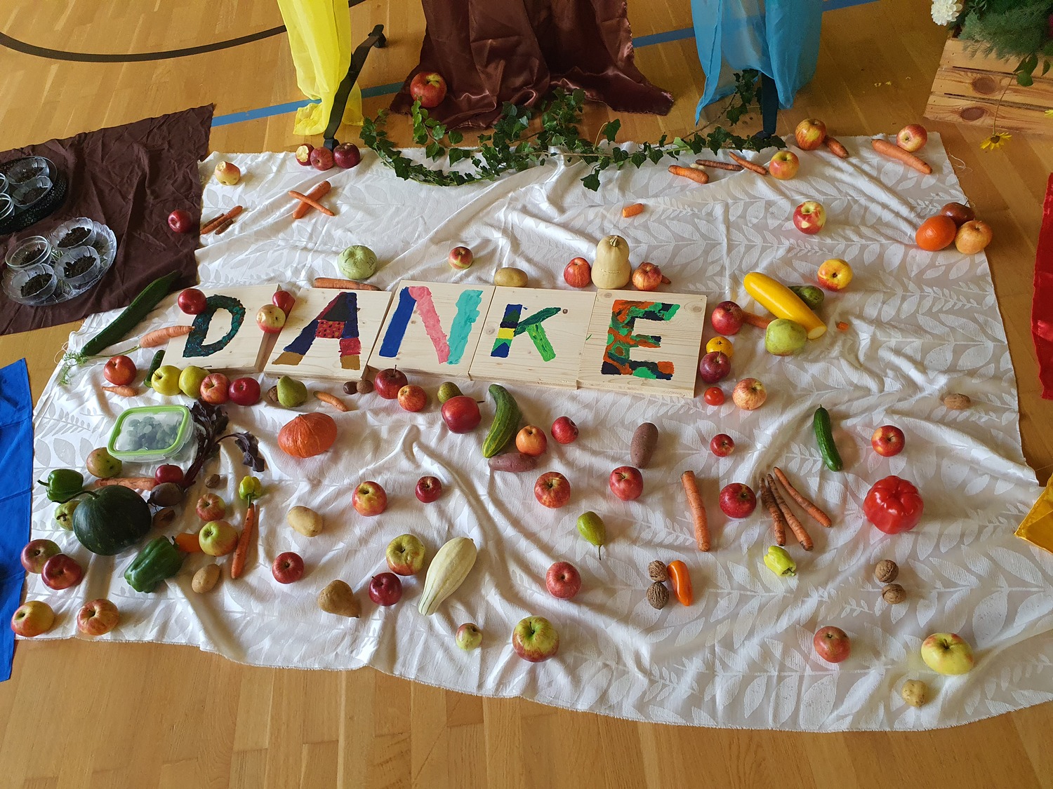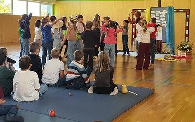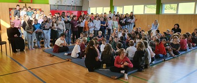 Zum Erntedankfest der Volks- und Mittelschule wurden auch Pfarrmoderator Mag. Simon Eiginger und Diakon Thomas Naske eingeladen. Die Feier wurde durch die Religionslehrerinnen Renate Heindl und Sylvia Pfeffer bestens und abwechslungsreich vorbereitet. Durch die aktive Mitarbeit der Klassenlehrer:innen, der Musikerinnen und der Frau Direktor war es sichtlich ein Fest der ganzen Schulen bei dem sich Lieder, Gedichte, Tänze, eine Meditation, die Segnung der Erntegaben und Gebet abwechselten und ergänzten. Zum Abschluss gab es noch für jeden wunderbare Kürbissuppe und eine Menge Kuchen - ein richtiges Erntedankfest!
